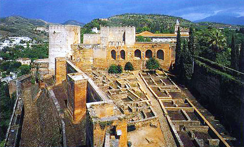 Алькасаба — цитадель с массивными стенами и башнями (первоначально их было 24, сохранилось только 8), охранявшая дворцовые помещения в Альгамбре — была построена в 13 в.