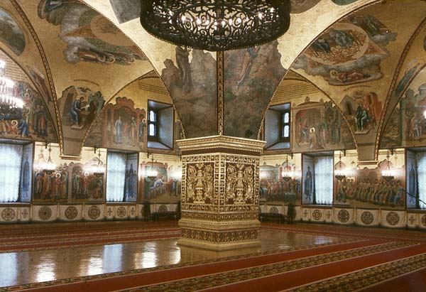 Московский Кремль. Грановитая палата с четырехгранным столпом в центре.