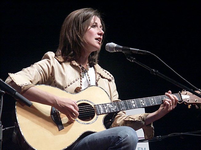 Во время исполнения песен часто певица аккомпанирует себе на гитаре. Концерт Эми Грант в Джонсборо в 2002 году.