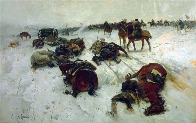 М.Б. Греков. Замерзшие казаки генерала Павлова. 1927 год. Холст, масло. Центральный музей вооруженных сил.