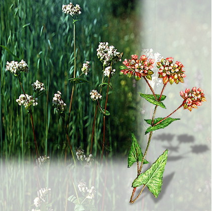 Гречиха посевная: часть растения с цветками.