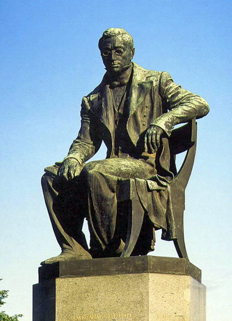 Памятник А.С. Грибоедову на Пионерской площади в Санкт-Петербурге. Скульптор В.В. Лищев, архитектор В.И. Яковлев. 1959.
