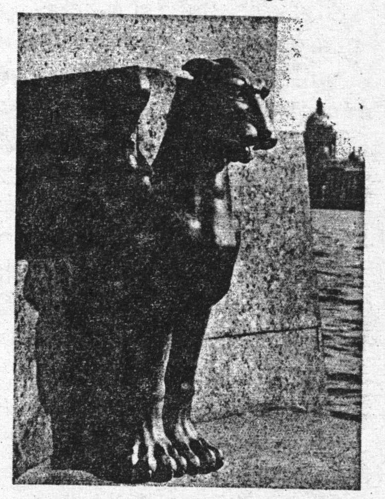 Фантастический крылатый лев с орлиной головой (грифон на пристани Академии художеств в Петербурге)