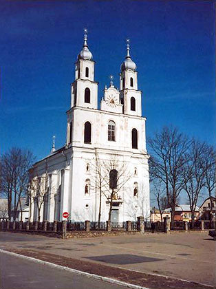 Гродненская область. Дятлово. Успенский костел. Построен в 1624-1646, в 1743 пострадал от пожара, перестроен в 1882 и 1900 (архитектор А. Осикевич). Однонефное двухбашенное сооружение с фасадом ярусного построения.