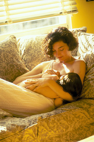 Кормление лежа особенно удобно, поскольку женщине не приходится напрягать спину и даже можно отдохнуть.