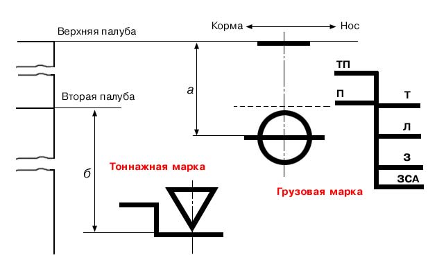Надводный борт: a – по летнюю грузовую марку; b – по тоннажную марку.