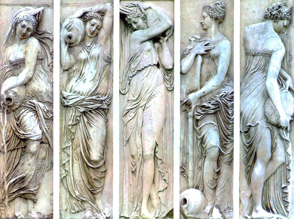Жан Гужон. Нимфы. Рельефы «Фонтана невинных». 1547-1549 годы. Мрамор. Лувр, Париж.