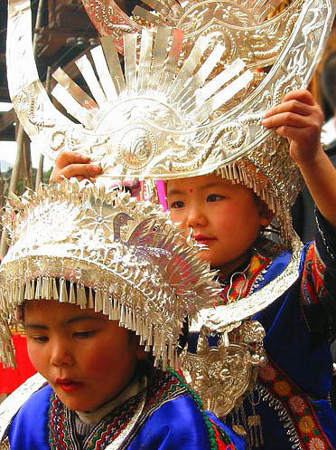 Гуйчжоу. Дети в национальных костюмах на фольклорном фестивале.