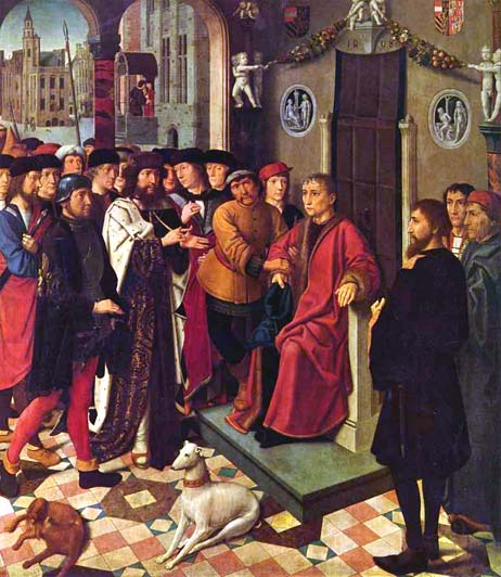 Герард Давид. Царь Камбиз и судья Сизамн. Арест судьи (фрагмент). 1498. Музей Грунинге в Брюгге.