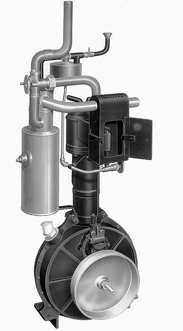 Одноцилиндровый двигатель, созданный Г. Даймлером в 1885 и получивший за свою форму название «дедушкины часы».