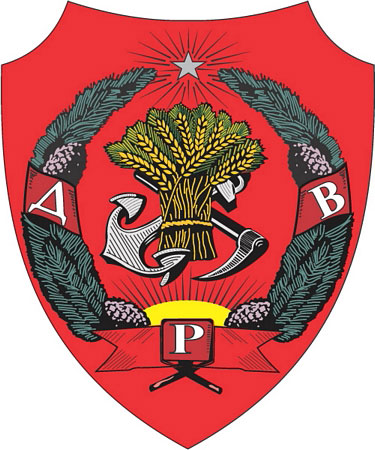 Герб Дальневосточной Республики был принят 11 ноября 1920 года. На красном щите хвойный сосновый венок, внутри которого на фоне восходящего солнца — скрещенные через сноп пшеницы якорь и остроконечное кайло. На венке на красной перевязи буквы Д, В, Р.