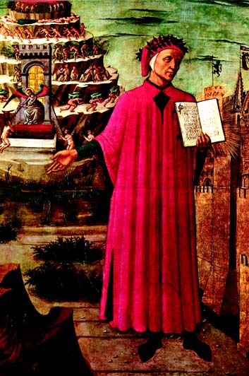 Данте Алигьери. Фреска Доменико ди Микелино в соборе Санта Мария дель фьоре во Флоренции. 15 в.