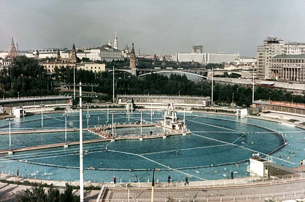 Бассейн «Москва» (архитектор Д. Н. Чечулин). Сооружен на месте снесенного Храма Христа Спасителя и фундаментов непостроенного Дворца Советов. просуществовал до начала 1990-х гг., когда началось восстановление Храма Хритста Спасителя.