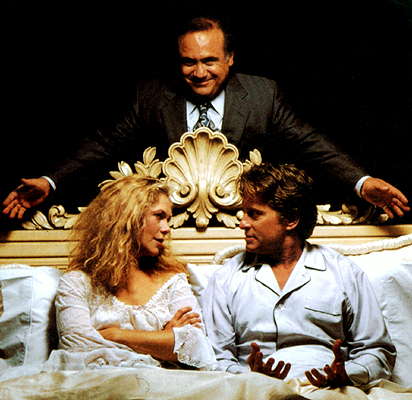 Кэтлин Тернер, Денни де Вито и Майкл Дуглас в фильме «Война в семействе Роуз». 1989 год.