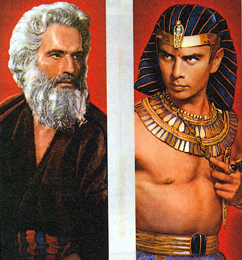 Плакат фильма режиссера Сесила Де Милля «Десять заповедей» с участием Чарлтона Хестона и Юла Бриннера. 1956 год.