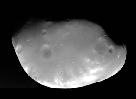 Внешний вид Деймоса. Фотография сделана АМС «Викинг-2» 20 октября 1977 с расстояния 500 км.