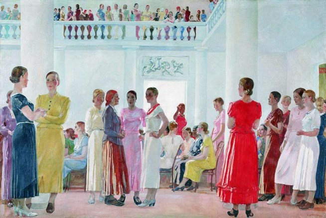 А.А. Дейнека. На женском собрании. 1937 год. Холст, масло. Челябинская картинная галерея.