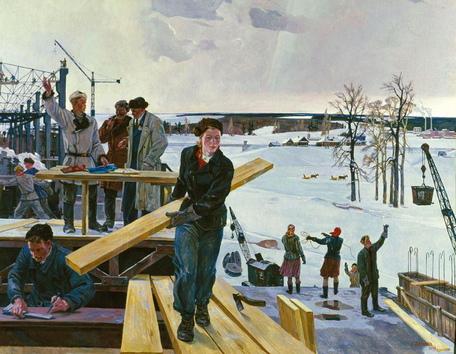 А.А. Дейнека. На просторах подмосковных строек. 1949 год. Холст, масло. Третьяковская галерея.
