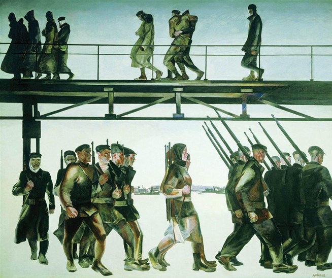 А.А. Дейнека. Оборона Петрограда. Холст, масло. 1928 год. Третьяковская галерея.