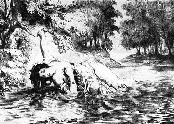 Эжен Делакруа. «Офелия». Иллюстрация к «Гамлету» Уильяма Шекспира.