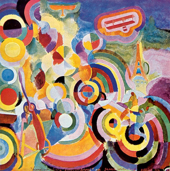 Робер Делоне. Посвящение Блерио. 1914 год. Холст, масло. Художественный музей, Гренобль. Картина посвящена перелету Луи Блерио через Ла-Манш в 1909 году.