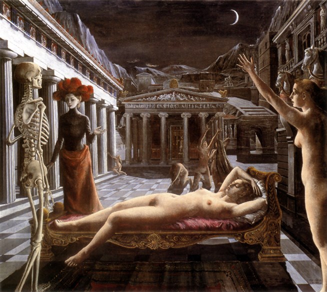 Поль Дельво. Спящая Венера. 1944 год. Холст, масло. Галерея Тейт, Лондон.
