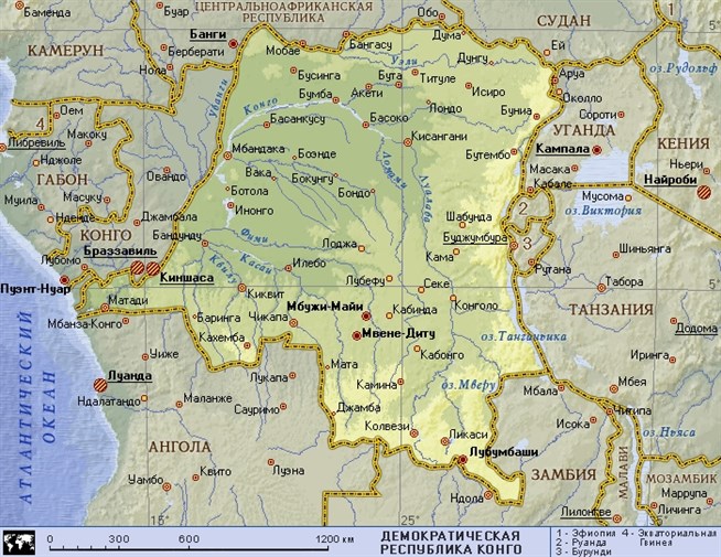 Демократическая Республика Конго (географическая карта).