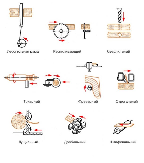 Схема работы различных деревообрабатывающих станков.