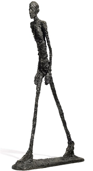 А. Джакометти. Идущий человек. 1960 год. Бронза, частное собрание. Скульптура «Идущий человек» входила в коллекцию Dresdner Bank и была продана на аукционе Sotheby’s за 65 млн. фунтов стерлингов. Ее изображение нанесено на банкноту достоинством в сто швейцарских франков.