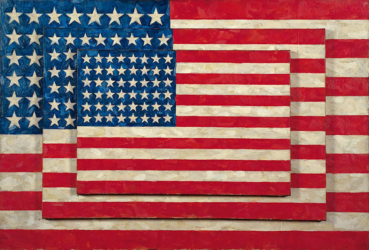 Джаспер Джонс. Три флага. 1958 год. Холст, энкаустика. Музей американского искусства Уитни, Нью-Йорк.