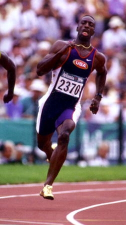 Забег на 100 м на Олимпиаде 1998 в Сеуле. Первым пришел Бен Джонсон, но был дисквалифицирован за применение допинга.
