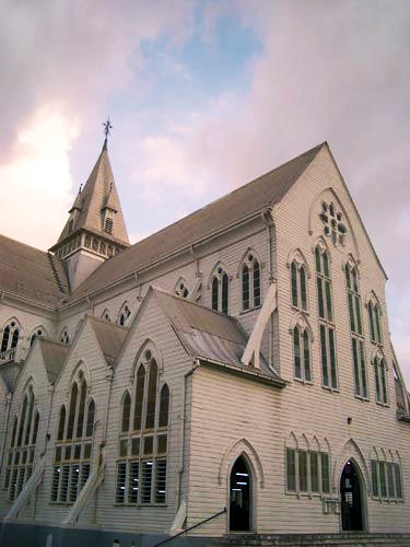Джорджтаун. Кафедральный собор Святого Джорджа на Норт-Роуд — центр англиканской епархии в Гайане. 1889-1892 годы. Самый высокий деревянный храм в мире — высота колокольни около 40 м.