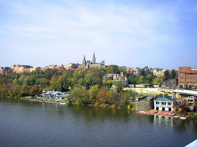 Вид на Джорджтаун со стороны реки Потомак. В центре — башни Джорджтаунского университета.