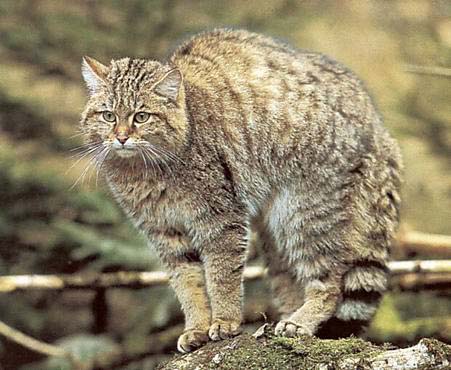 Дикая кошка (Felis silvestris) крупнее домашней, у нее более толстый хвост.