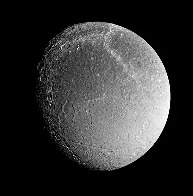 Внешний вид Дионы. Фотография сделана АМС «Кассини» 1 августа 2005 с расстояния 269 тыс. км.