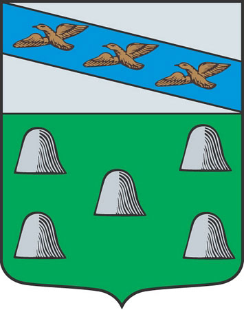 Герб города Дмитриев-Льговский был утвержден 8 января 1780 года. В верхней части курский герб, внизу «пять горок, называемые сопки, в зеленом поле, каковыми оный город от прочих отличается».
