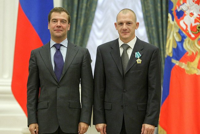 Серебряный призер пекинской Олимпиады 2008 года по прыжкам в воду Дмитрий Саутин с Президентом России Дмитрием Медведевым. Москва, 2009 год. Фото пресс-службы Президента России, kremlin.ru