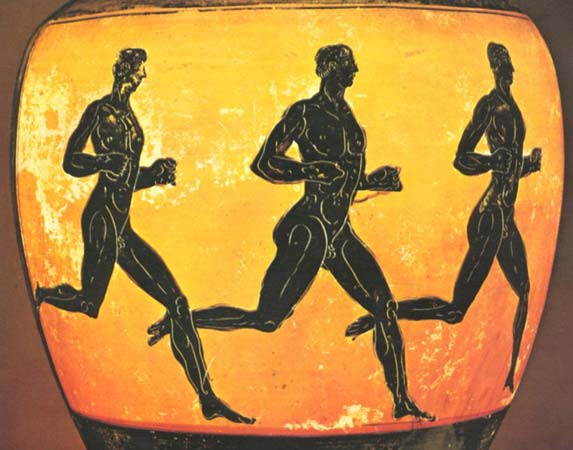 Бегун в долихосе. Роспись панафинейской амфоры. 333 до н. э. Лондон, Британский музей.