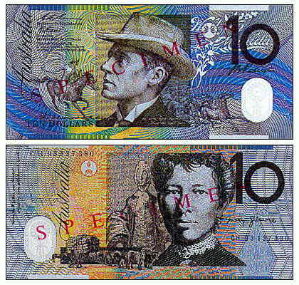 Десять австралийских долларов. 137 x 65 мм.