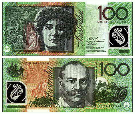 Сто австралийских долларов. 158 x 65 мм. 1996 г.