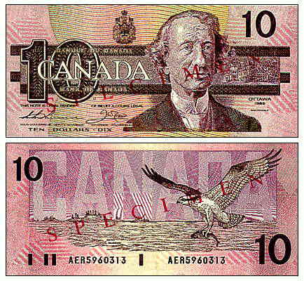 Десять канадских долларов. 1989 г.