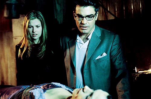 Али Лартер в роли Сары Вульф, Питер Галлахер в роли Дональда Блэкберна. Фильм «Дом на холме призраков».