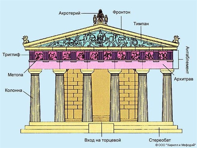 Схема фасада дорического храма.