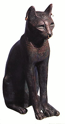 Бронзовая фигурка кошки, изображающая богиню Баст. Поздний период Нового Царства.