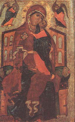 Икона «Богоматерь Толгская». Конец 13 века. Из Воздвиженской церкви Толгского монастыря близ Ярославля. Третьяковская галерея.