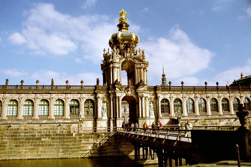 Дрезден. Дворцовый ансамбль Цвингер. 1711-1732 годы. Архитектор Д. Пеппельман, скульптурный декор Б. Пермозера. Дворец был построен для короля Августа Сильного. Здесь размещается Дрезденская галерея. Во время Второй мировой войны дворец был разрушен, реставрационные работы были в основном завершены к 1964 году.