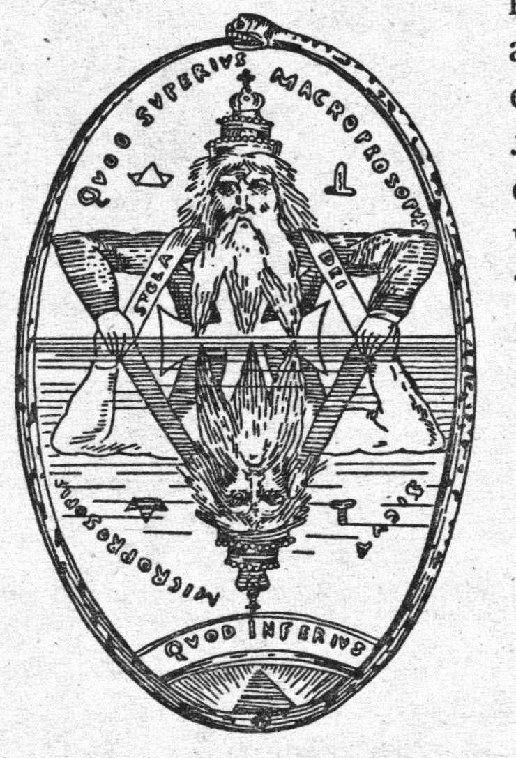 Диаграмма «Двойной треугольник Соломона», на которой изображены два древних представителя каббалистической доктрины: Макропрозипус и Микропрозипус, Бог Света и Бог Отражения (из книги Элифаса Леви «Трансцендентная магия», 1896 год)