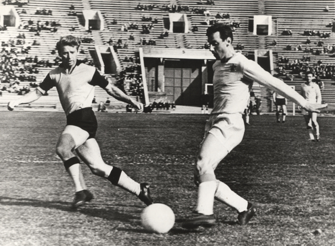 Эдуард Дубинский играл за ЦСКА в 1960-е гг. На снимке с мячом.