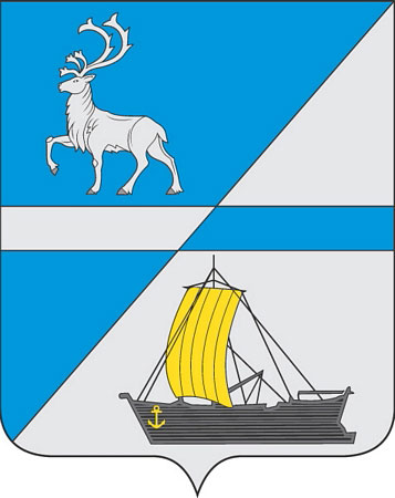 Герб Дудинки был принят 17 октября 2001 года. В щите скошенном лазурью и серебром узкий пояс переменных цветов. Сверху в лазурном поле серебряный северный олень. Внизу в серебряном поле — черный коч с золотыми парусами и якорем.