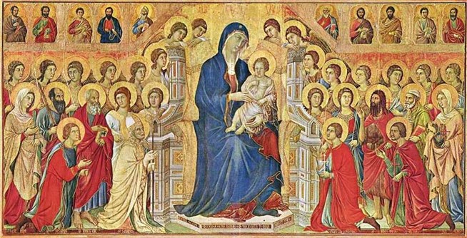 Дуччо ди Буонинсенья. Маэста (Величие Богоматери). 1308-1311 годы. Центральная часть алтаря Сиенского собора.